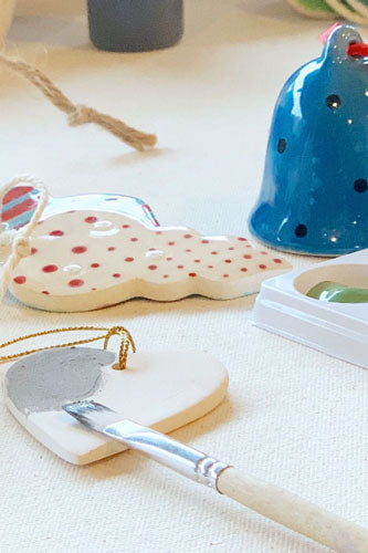 You'll get a selection of ceramic pieces in the workshop. Paint and decorate them with all tools and materials provided for you. Once completed, it’ll be fired in the kiln so your ceramic is functional and usable. Your ceramic Christmas ornaments will be available for pick up two weeks after the class.